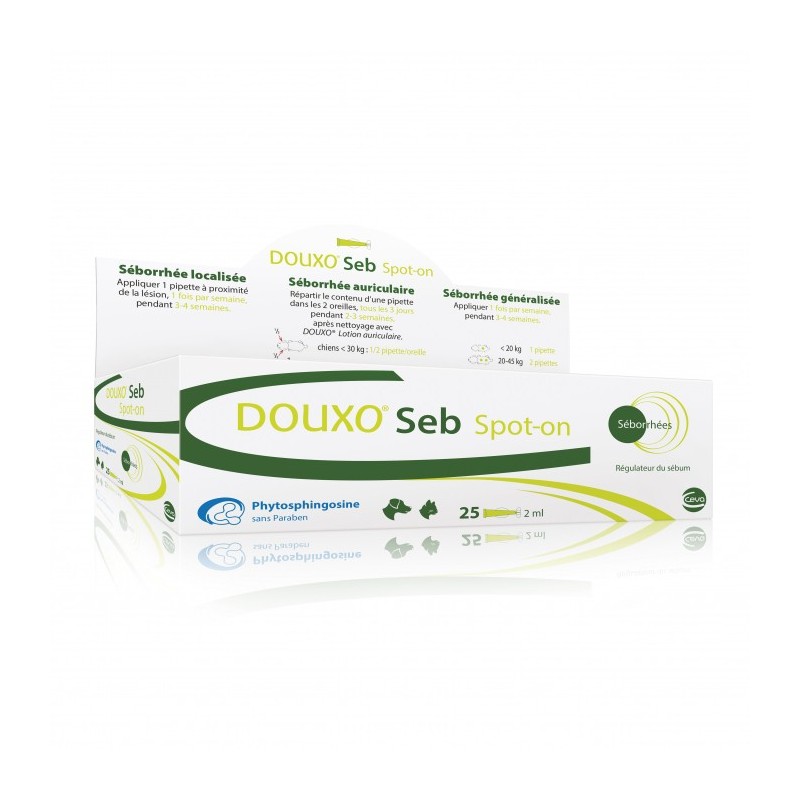 L’excipient de DOUXO Séborrhée Spot-on permet sa diffusion, après application sur la peau, dans les éléments lipidiques de l’épiderme.