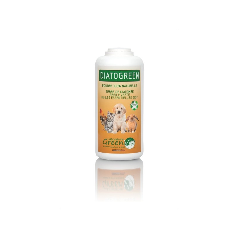 Diatogreen poudre est 100 % naturelle, qui assainit le pelage et la litière des chiens, chats, lapins et animaux de basse-cour.