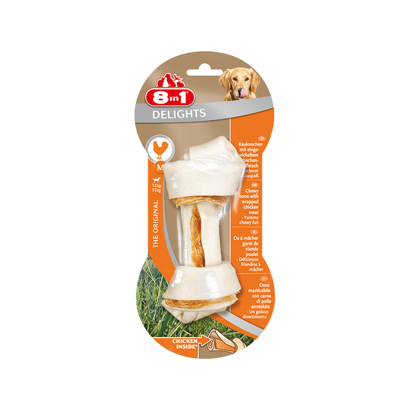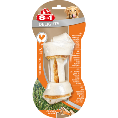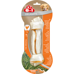 Os à mâcher Delights Original sont de savoureuses friandises naturelles au boeuf avec à l'int"rieur de l'os un filet de poulet enroules qui offrira à votre chien un long moment de détente et de mastication.