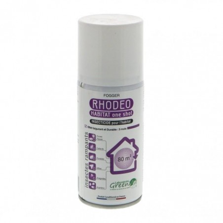 Rhodeo Habitat One Shot est un antiparasitaire pour l'habitat des animaux de compagnie. Il contient deux insecticides naturels : un pyréthrinoïde et le géraniol qui sont très puissants et il contient également de la perméthrine qui prend le relais pour assurer une efficacité dans la durée.