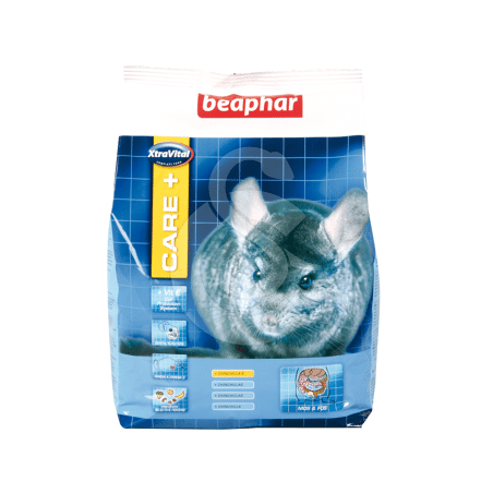 L'aliment pour Chinchilla Beaphar Care +  est une formule super premium riche en fibres (20%) avec une faible teneur en matières grasses. Chaque granulé à la même composition, ce qui est important pour une alimentation équilibrée (plus de gaspillage, ni de carences grâce à cette alimentation complète). La dureté des granulés favorise l'usure naturelle des dents.