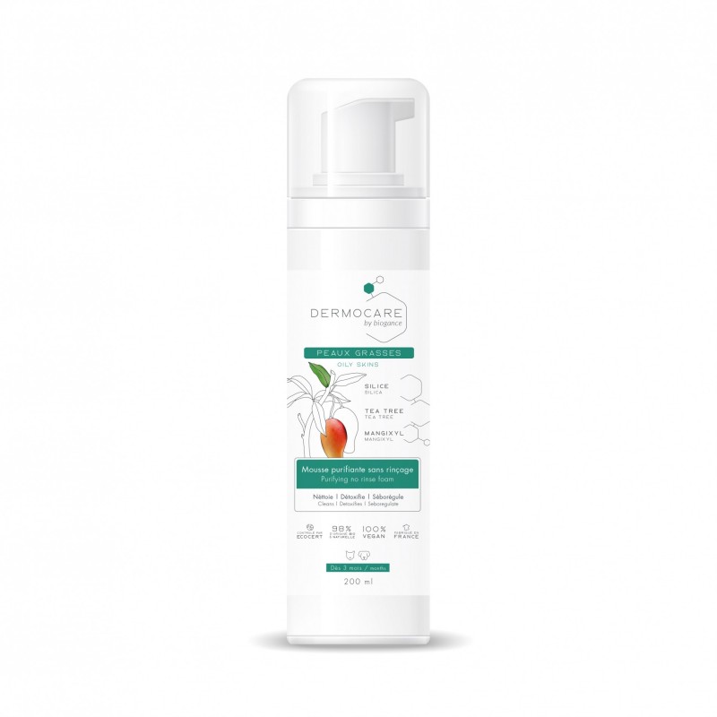 Cette mousse purifiante Dermocare a été délicatement développée pour les peaux grasses. Sa base lavante douce associe les actions détoxifiantes, purifiantes et séborégulatrices de la silice, du tea tree et du mangixyl.